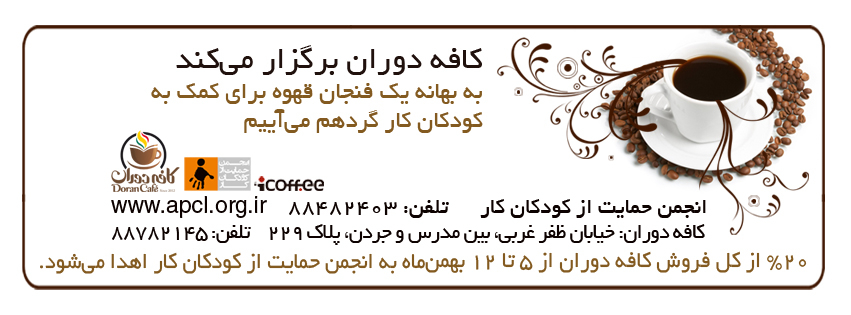 ۲۰٪ از درآمد کافه دوران در طی این یک هفته به انجمن حمایت از کودکان کار اهدا میشود.