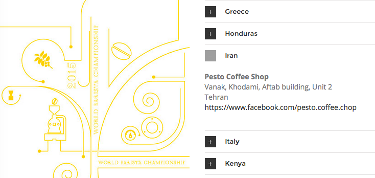 کافه پستو بهعنوان کافهی محل پخش مسابقات جهانی باریستا در ایران در وبسایت WBC معرفی شده است.