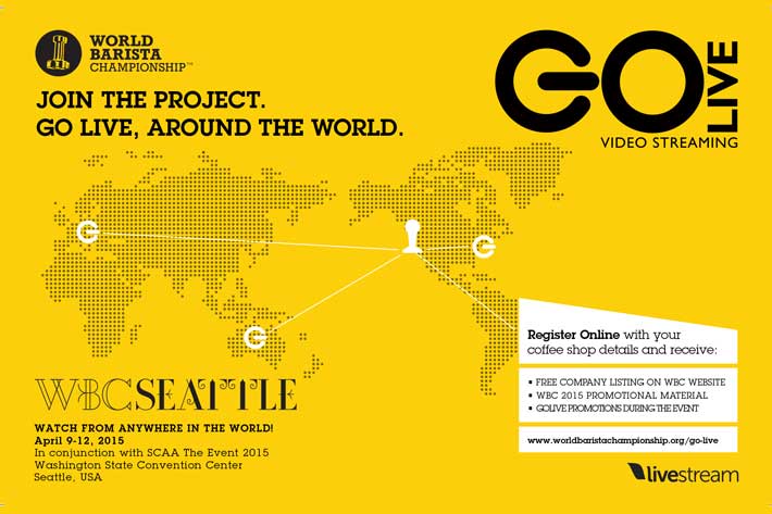 در این طرح کافههای مختلف از سراسر دنیا برای پخش زندهی تمام یا بخشی از مسابقات جهانی باریستا در وبسایت WBC اعلام آمادگی میکنند. مسابقات امسال در بیش از ۳۰ کافه در شهرهای مختلف دنیا بهصورت زنده پخش میشود.