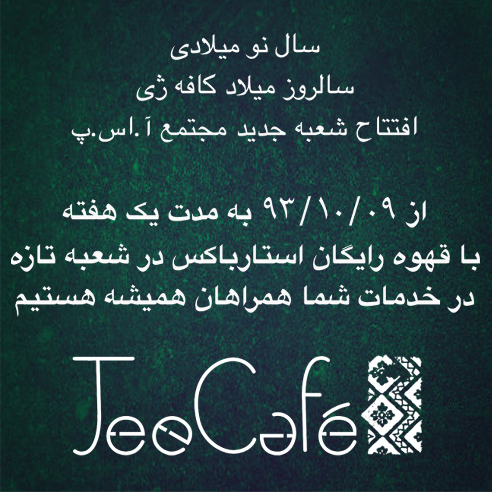 کافه ژی بهمناسبت گشایش شعبهای جدید در مجموعه برجهای آ . اس . پ از روز سهشنبه نهم دیماه ۹۳ بهمدت یک هفته قهوه رایگان استارباکس سرو میکند.