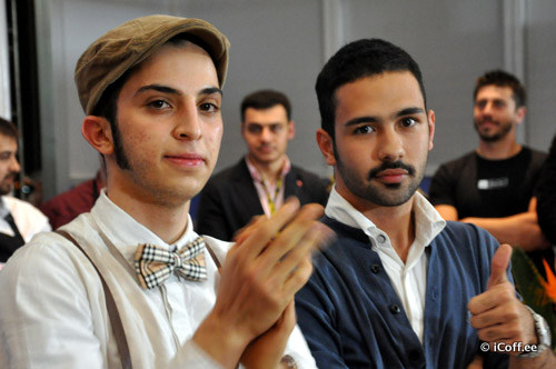 سامین رهنورد (کافیشاپ پستو) نفر دوم مسابقات کافکس در کنار حافظ صفایی