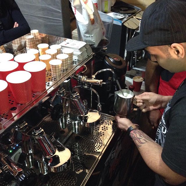 تعدادی از باریستاهای حاضر در مراسم به بررسی دستگاه و اسپرسوگیری و فوم دادن شیر با ماشین اسپرسوساز تکنو دقیق مدل T94 پرداختند.