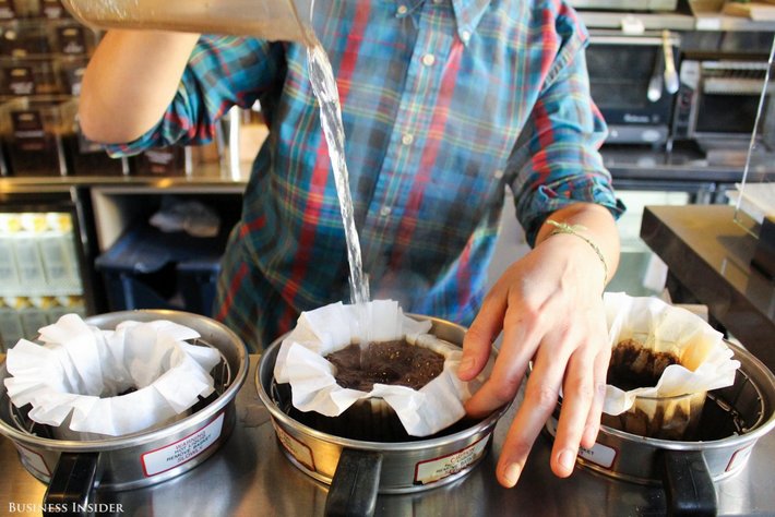 روش نخست، دَم کردن با آب داغ: به‌نظر می‌رسد این راه مرسوم‌ترین روش قهوه درست کردن است و متداول‌ترین ادوات این روش عبارت‌اند از قهوه‌ساز فیلتری، فرنچ‌پرس و موکا پات. این قهوه معمولا عطر قوی با طعم ترش و یا تلخی اسیدی دارد.