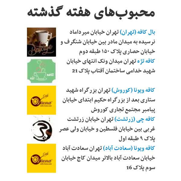 کافه های محبوب هفته سوم آذرماه ۱۳۹۳