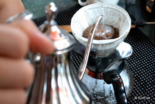 قهوهای که به این شیوه درست میشود، باید تک-خاستگاه (single origin) بوده و با درجهی پایین بو داده شده باشد. استفاده از این روش، ذات طعمی قهوهی آن منطقه را به بهترین شکل ممکن بهدست میدهد. مسالهی دیگر این است که جریان آب باید به آرامی و کاملا یکنواخت روی قهوه سرازیر شود. به همین خاطر است که قوریهایی با لولهی باریک و بلند مخصوص همین روش تهیهی قهوه طراحی شده که به قهوهچی بهخوبی امکان کنترل جریان آب را میدهد.